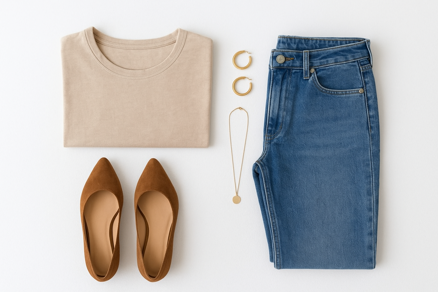 提案画像: 明るい自然光の下で商品を真上から撮影し、白い布を背景にきれいに並べられた複数アイテム