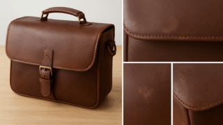 提案画像: ブランドバッグのロゴがはっきりと見える写真。背景はシンプルで、バッグの質感が伝わるように撮影されている。