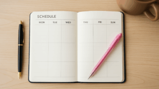 学習計画を立てている様子(手帳やカレンダーに学習スケジュールを書き込んでいる場面)提案画像: 学習計画を立てている様子(手帳やカレンダーに学習スケジュールを書き込んでいる場面)。